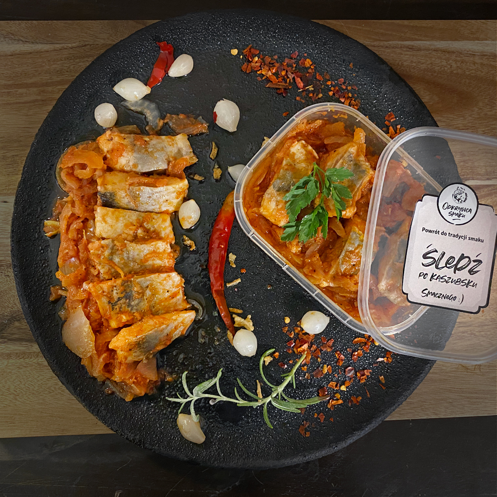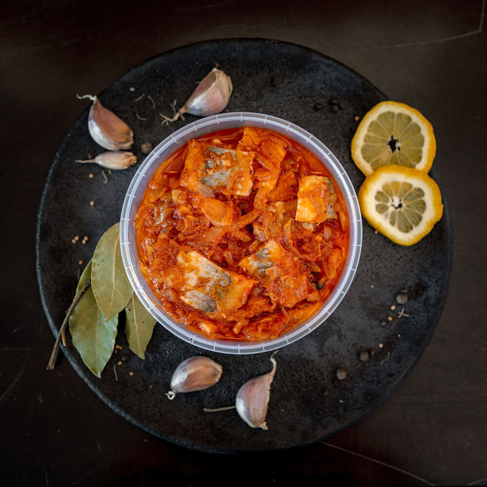 Filety śledziowe połączone z pysznym farszem pomidorowo-cebulowym.